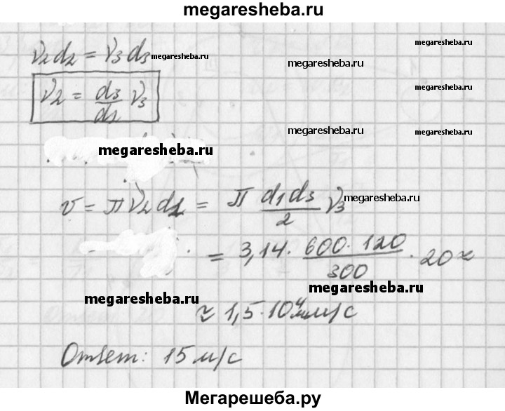 101. Циркулярная пила имеет диаметр 600 мм. На ось пилы насажен шкив диаметром 300 мм, который приводится во вращение посредством ремённой передачи от шкива диаметром 120 мм, насаженного на вал электродвигателя. Какова скорость зубьев пилы, если вал двигателя совершает 1200 об/мин?