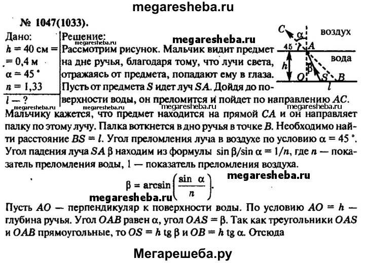 Подробный решебник (ГДЗ) по Физике за 10‐11 (десятый‐одиннадцатый) класс задачник - готовый ответ номер - 1047. Авторы учебника: Рымкевич. Издательство: Дрофа 2016.