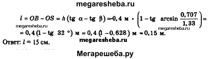 1047. Мальчик старается попасть палкой в предмет, находящийся на дне ручья глубиной 40 см. На каком расстоянии от предмета палка попадёт в дно ручья, если мальчик, точно прицелившись, двигает палку под углом 5° к поверхности воды?