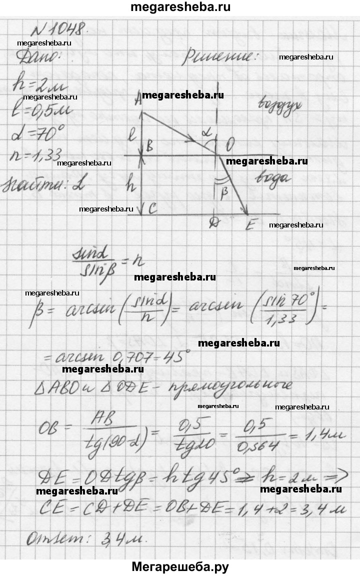 Подробный решебник (ГДЗ) по Физике за 10‐11 (десятый‐одиннадцатый) класс задачник - готовый ответ номер - 1048. Авторы учебника: Рымкевич. Издательство: Дрофа 2016.