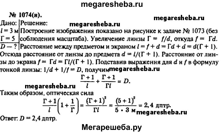 Подробный решебник (ГДЗ) по Физике за 10‐11 (десятый‐одиннадцатый) класс задачник - готовый ответ номер - 1074. Авторы учебника: Рымкевич. Издательство: Дрофа 2016.