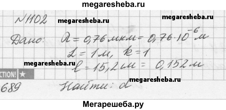Подробный решебник (ГДЗ) по Физике за 10‐11 (десятый‐одиннадцатый) класс задачник - готовый ответ номер - 1102. Авторы учебника: Рымкевич. Издательство: Дрофа 2016.