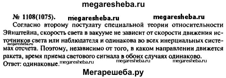 1108. Сравнить время приёма светового сигнала с одного расстояния, посланного с ракеты, если: а) ракета удаляется от наблюдателя; б) ракета приближается к наблюдателю.