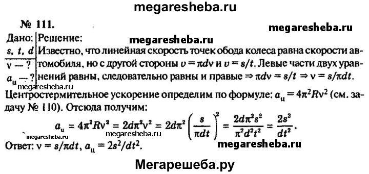 Подробный решебник (ГДЗ) по Физике за 10‐11 (десятый‐одиннадцатый) класс задачник - готовый ответ номер - 111. Авторы учебника: Рымкевич. Издательство: Дрофа 2016.