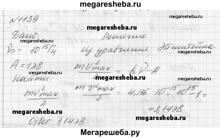 Подробный решебник (ГДЗ) по Физике за 10‐11 (десятый‐одиннадцатый) класс задачник - готовый ответ номер - 1139. Авторы учебника: Рымкевич. Издательство: Дрофа 2016.