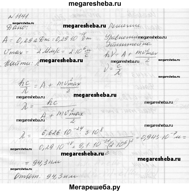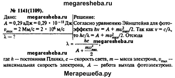 Подробный решебник (ГДЗ) по Физике за 10‐11 (десятый‐одиннадцатый) класс задачник - готовый ответ номер - 1141. Авторы учебника: Рымкевич. Издательство: Дрофа 2016.