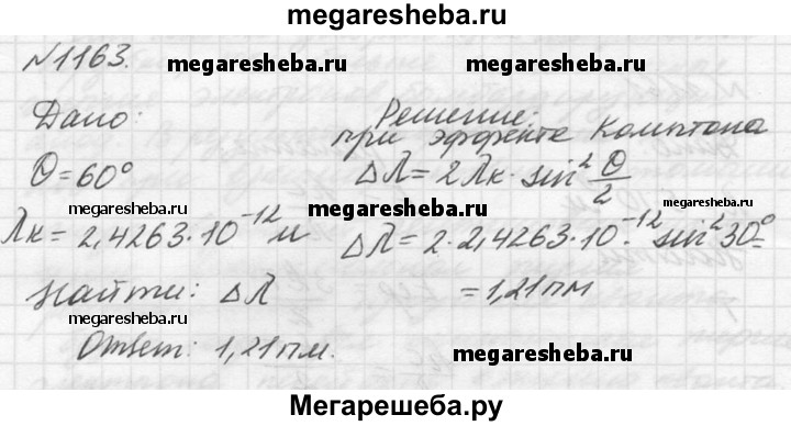 Подробный решебник (ГДЗ) по Физике за 10‐11 (десятый‐одиннадцатый) класс задачник - готовый ответ номер - 1163. Авторы учебника: Рымкевич. Издательство: Дрофа 2016.
