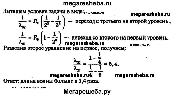 1178. Во сколько раз длина волны излучения атома водорода при переходе из третьего энергетического состояния во второе больше длины волны излучения, обусловленного переходом из второго состояния в первое?