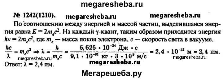 Подробный решебник (ГДЗ) по Физике за 10‐11 (десятый‐одиннадцатый) класс задачник - готовый ответ номер - 1242. Авторы учебника: Рымкевич. Издательство: Дрофа 2016.