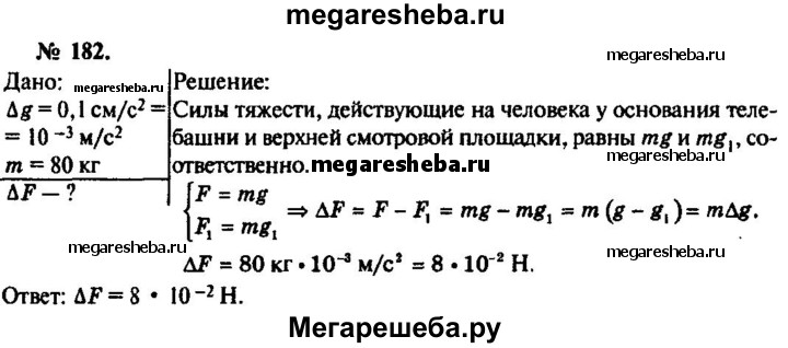 Подробный решебник (ГДЗ) по Физике за 10‐11 (десятый‐одиннадцатый) класс задачник - готовый ответ номер - 182. Авторы учебника: Рымкевич. Издательство: Дрофа 2016.