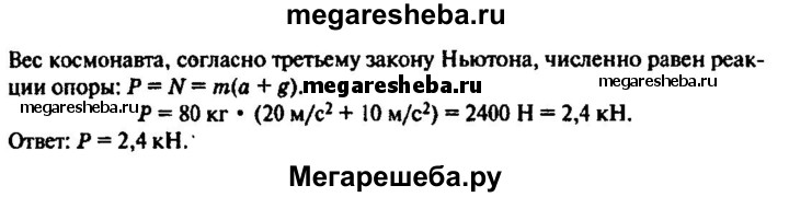 184. Космическая ракета при старте с поверхности Земли движется вертикально с ускорением 20 м/с2. Найти вес лётчика-космонавта массой 80 кг в кабине при старте ракеты.