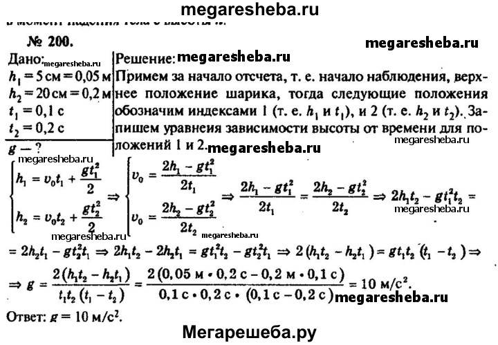 ГДЗ по физике 10‐11 класс Рымкевич задачник номер - 200