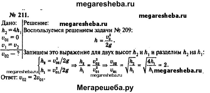Подробный решебник (ГДЗ) по Физике за 10‐11 (десятый‐одиннадцатый) класс задачник - готовый ответ номер - 211. Авторы учебника: Рымкевич. Издательство: Дрофа 2016.