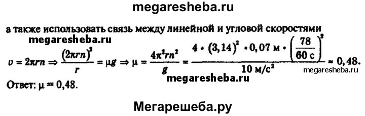 269. Горизонтально расположенный диск проигрывателя вращается с частотой 78 об/мин. На него поместили небольшой предмет. Предельное расстояние от предмета до оси вращения, при котором предмет удерживается на диске, равно 7 см. Каков коэффициент трения между предметом и диском? При возможности определить этим способом коэффициент трения, поместив на диске проигрывателя ученическую резинку, спичку или монету.