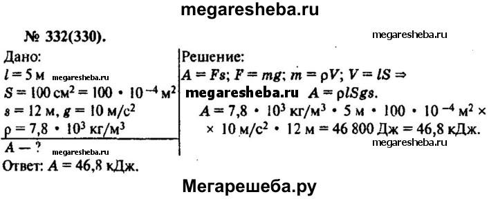 Подробный решебник (ГДЗ) по Физике за 10‐11 (десятый‐одиннадцатый) класс задачник - готовый ответ номер - 332. Авторы учебника: Рымкевич. Издательство: Дрофа 2016.