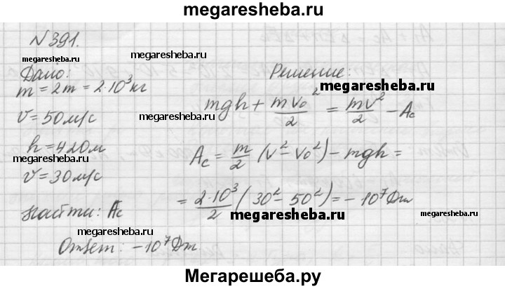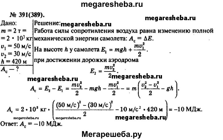 Подробный решебник (ГДЗ) по Физике за 10‐11 (десятый‐одиннадцатый) класс задачник - готовый ответ номер - 391. Авторы учебника: Рымкевич. Издательство: Дрофа 2016.