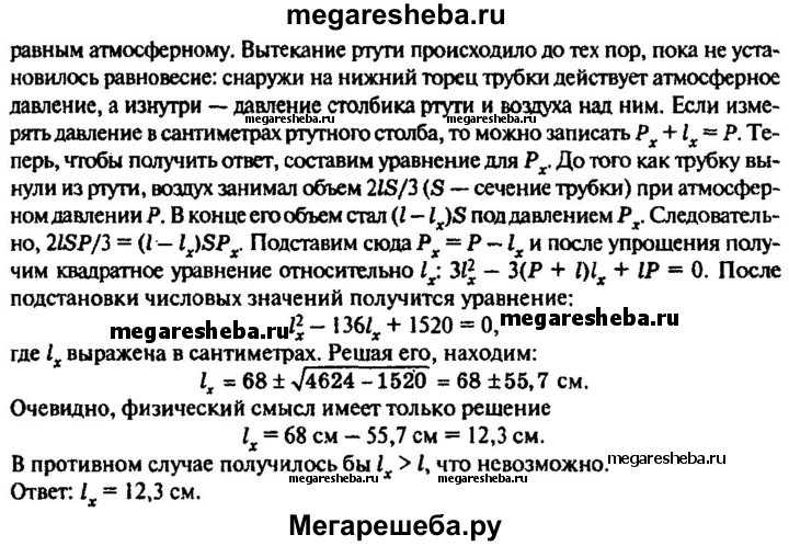 524. Открытую с обеих сторон стеклянную трубку длиной 60 см опускают в сосуд с ртутью на 1/3 длины. Затем, закрыв верхний конец трубки, вынимают её из ртути. Какой длины столбик ртути останется в трубке? Атмосферное давление 76 см рт. ст.
