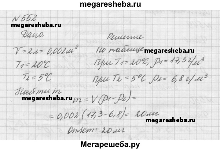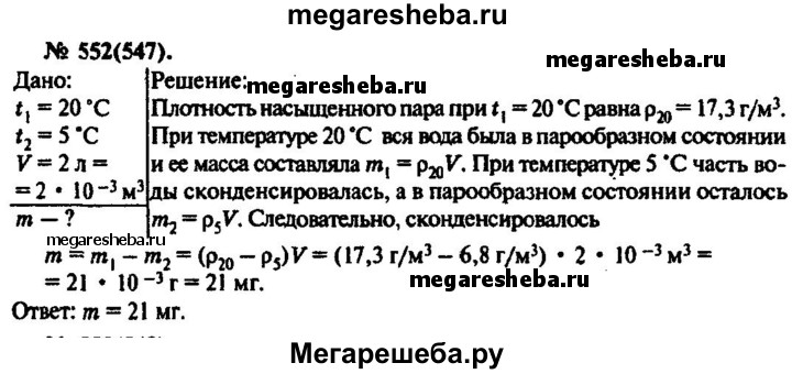 Подробный решебник (ГДЗ) по Физике за 10‐11 (десятый‐одиннадцатый) класс задачник - готовый ответ номер - 552. Авторы учебника: Рымкевич. Издательство: Дрофа 2016.