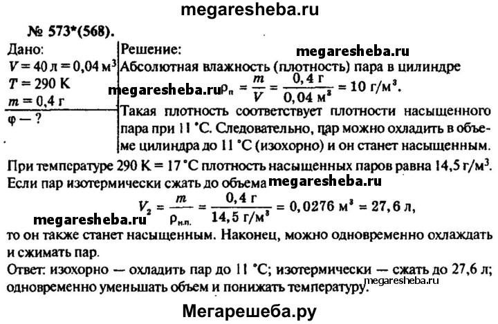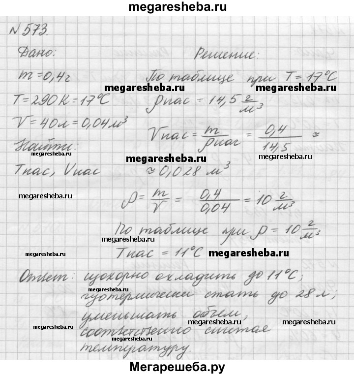 Подробный решебник (ГДЗ) по Физике за 10‐11 (десятый‐одиннадцатый) класс задачник - готовый ответ номер - 573. Авторы учебника: Рымкевич. Издательство: Дрофа 2016.