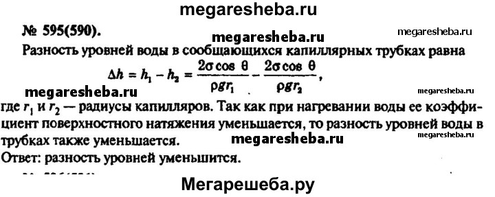 595. Сообщающиеся капиллярные трубки разного диаметра заполнены водой. Как изменится разность уровней воды в трубках при нагревании воды?