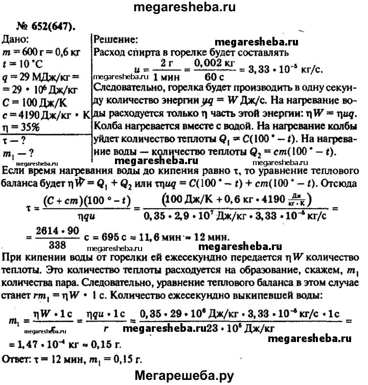 Подробный решебник (ГДЗ) по Физике за 10‐11 (десятый‐одиннадцатый) класс задачник - готовый ответ номер - 652. Авторы учебника: Рымкевич. Издательство: Дрофа 2016.
