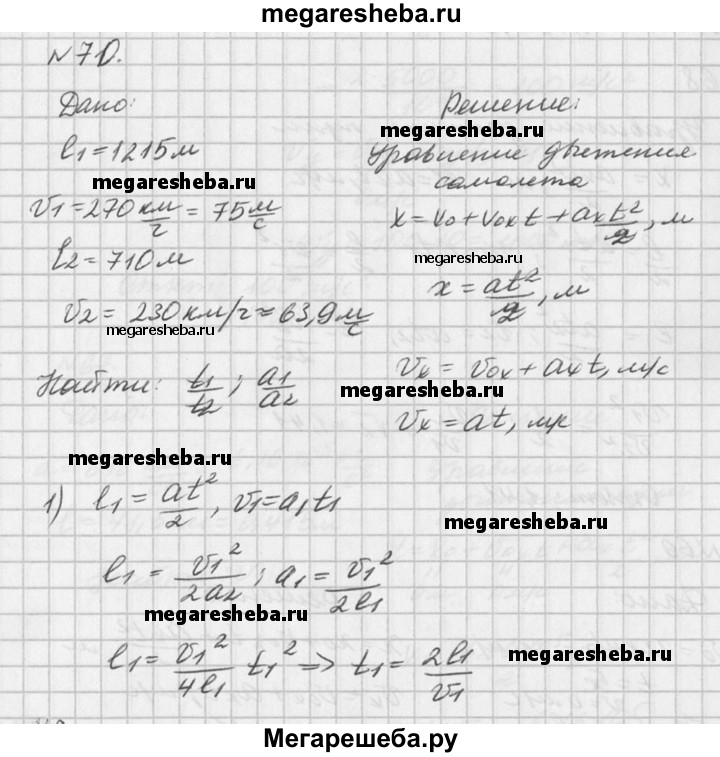 Подробный решебник (ГДЗ) по Физике за 10‐11 (десятый‐одиннадцатый) класс задачник - готовый ответ номер - 70. Авторы учебника: Рымкевич. Издательство: Дрофа 2016.