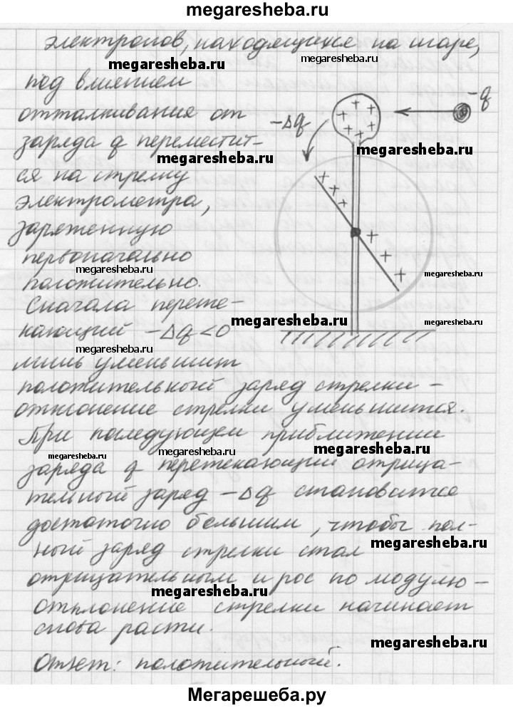 710. К заряженному электрометру подносят с достаточно большого расстояния отрицательно заряженный предмет. По мере приближения предмета показания электрометра сначала уменьшаются, а с некоторого момента вновь увеличиваются. Заряд какого знака был на электрометре?