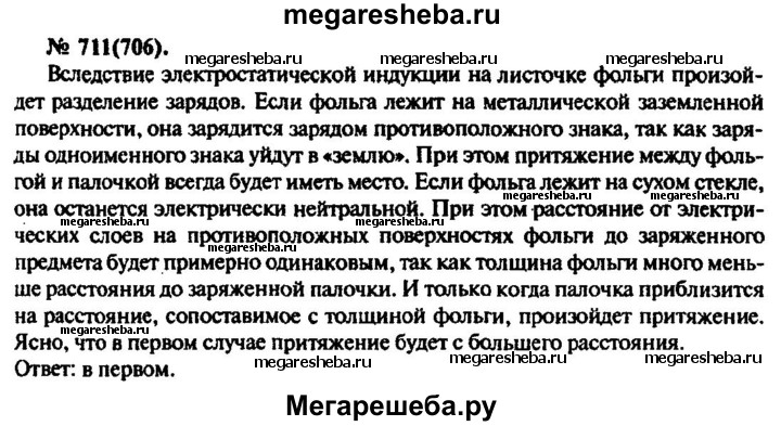 711. В каком случае листочек незаряженной металлической фольги с большего расстояния притянется к заряженной палочке: если он лежит на заземленном стальном листе или когда он находится на сухом стекле?