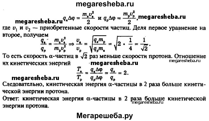740. Сравнить кинетические энергии и приобретённые скорости протона и а-частицы, которые прошли одинаковые ускоряющие разности потенциалов. Масса а-частицы в 4 раза больше массы протона, а заряд — в 2 раза больше.