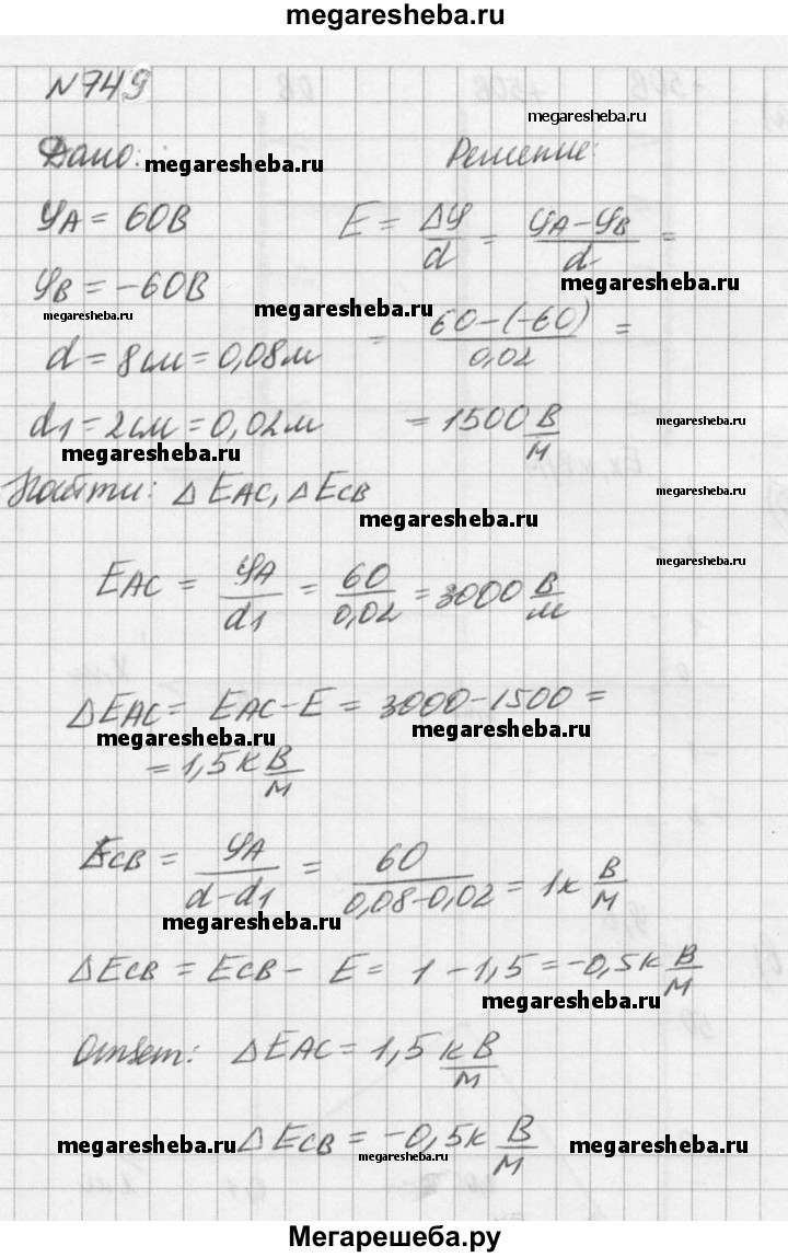 Подробный решебник (ГДЗ) по Физике за 10‐11 (десятый‐одиннадцатый) класс задачник - готовый ответ номер - 749. Авторы учебника: Рымкевич. Издательство: Дрофа 2016.
