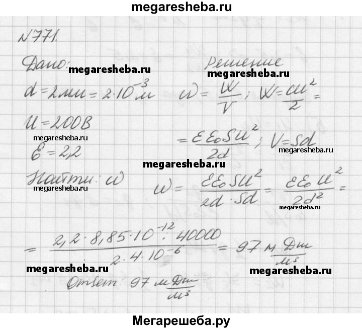 Подробный решебник (ГДЗ) по Физике за 10‐11 (десятый‐одиннадцатый) класс задачник - готовый ответ номер - 771. Авторы учебника: Рымкевич. Издательство: Дрофа 2016.