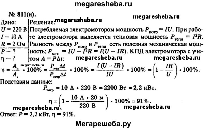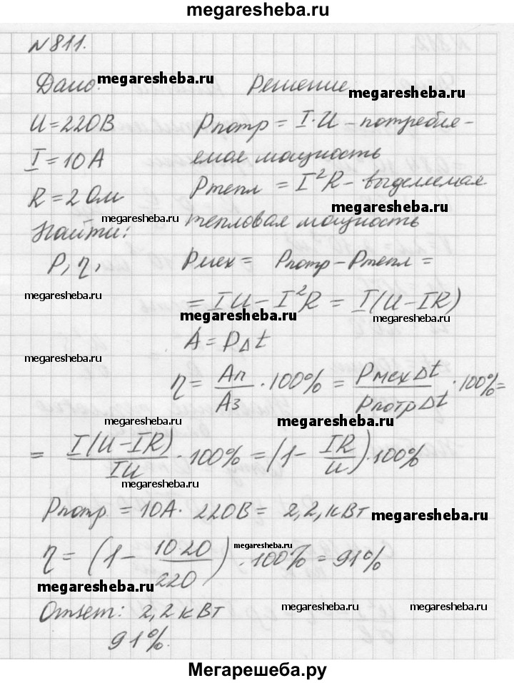 Подробный решебник (ГДЗ) по Физике за 10‐11 (десятый‐одиннадцатый) класс задачник - готовый ответ номер - 811. Авторы учебника: Рымкевич. Издательство: Дрофа 2016.