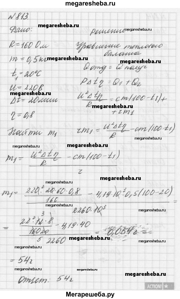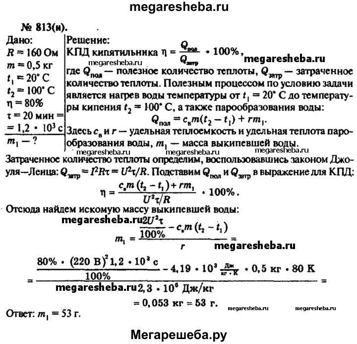 Подробный решебник (ГДЗ) по Физике за 10‐11 (десятый‐одиннадцатый) класс задачник - готовый ответ номер - 813. Авторы учебника: Рымкевич. Издательство: Дрофа 2016.