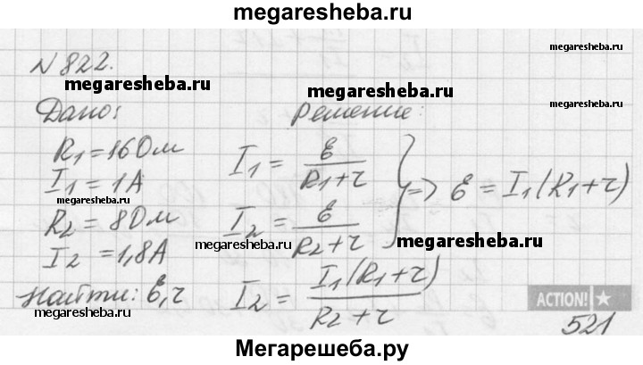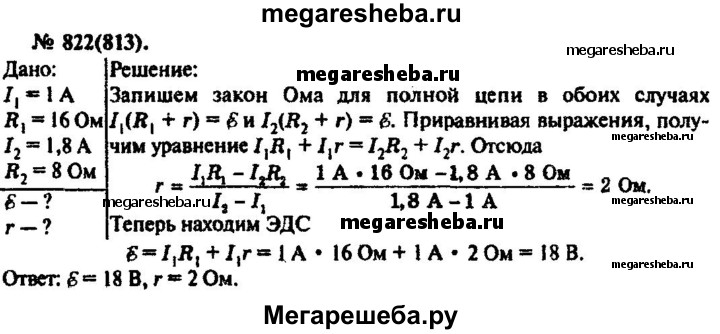 Подробный решебник (ГДЗ) по Физике за 10‐11 (десятый‐одиннадцатый) класс задачник - готовый ответ номер - 822. Авторы учебника: Рымкевич. Издательство: Дрофа 2016.