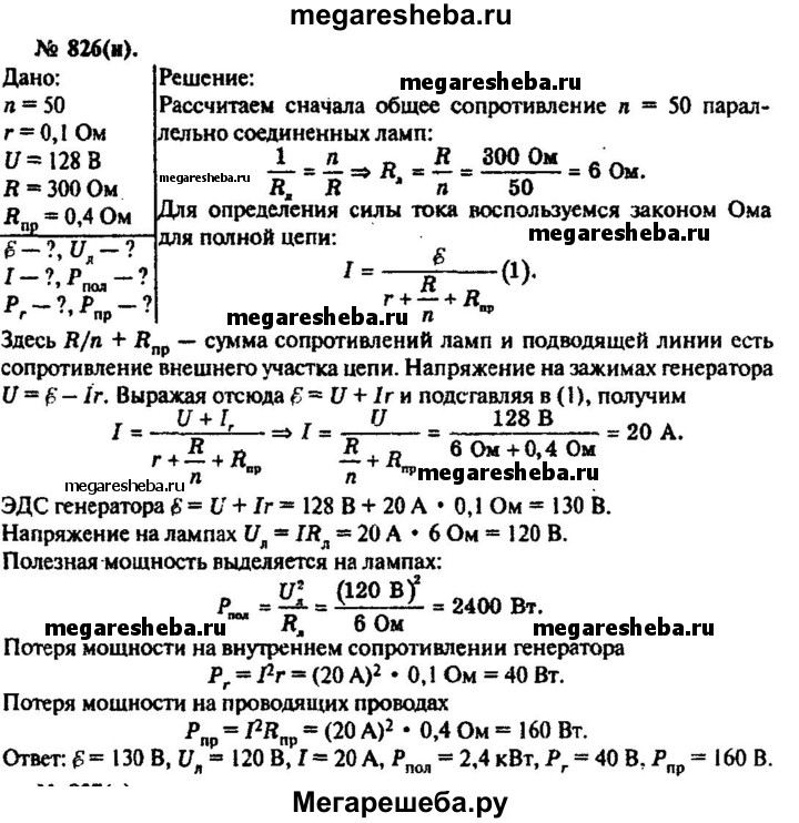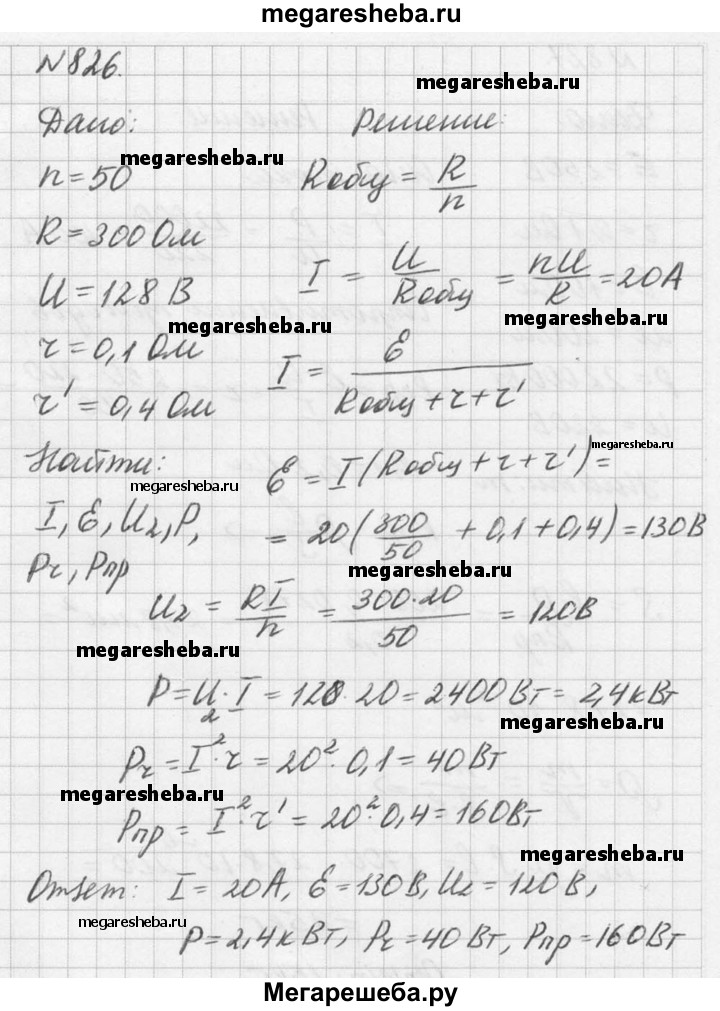 Подробный решебник (ГДЗ) по Физике за 10‐11 (десятый‐одиннадцатый) класс задачник - готовый ответ номер - 826. Авторы учебника: Рымкевич. Издательство: Дрофа 2016.