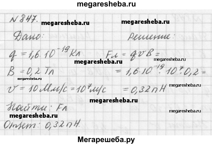 Подробный решебник (ГДЗ) по Физике за 10‐11 (десятый‐одиннадцатый) класс задачник - готовый ответ номер - 847. Авторы учебника: Рымкевич. Издательство: Дрофа 2016.