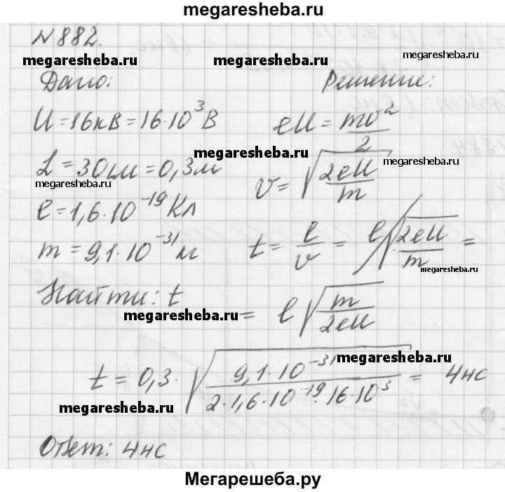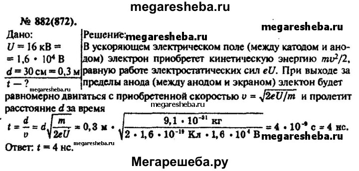 Подробный решебник (ГДЗ) по Физике за 10‐11 (десятый‐одиннадцатый) класс задачник - готовый ответ номер - 882. Авторы учебника: Рымкевич. Издательство: Дрофа 2016.