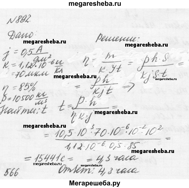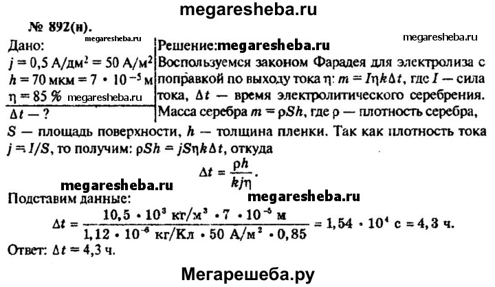 Подробный решебник (ГДЗ) по Физике за 10‐11 (десятый‐одиннадцатый) класс задачник - готовый ответ номер - 892. Авторы учебника: Рымкевич. Издательство: Дрофа 2016.