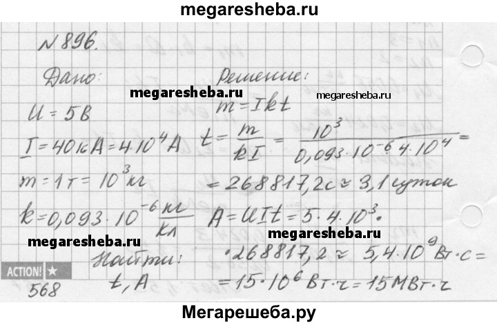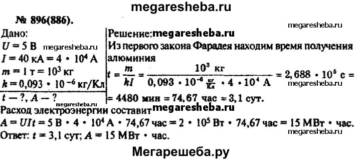 Подробный решебник (ГДЗ) по Физике за 10‐11 (десятый‐одиннадцатый) класс задачник - готовый ответ номер - 896. Авторы учебника: Рымкевич. Издательство: Дрофа 2016.