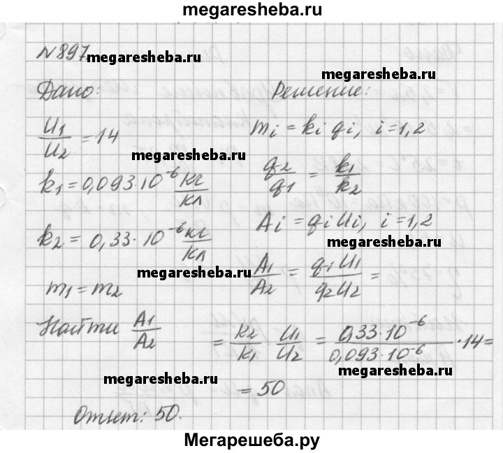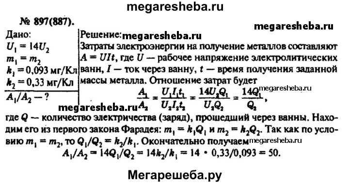 Подробный решебник (ГДЗ) по Физике за 10‐11 (десятый‐одиннадцатый) класс задачник - готовый ответ номер - 897. Авторы учебника: Рымкевич. Издательство: Дрофа 2016.