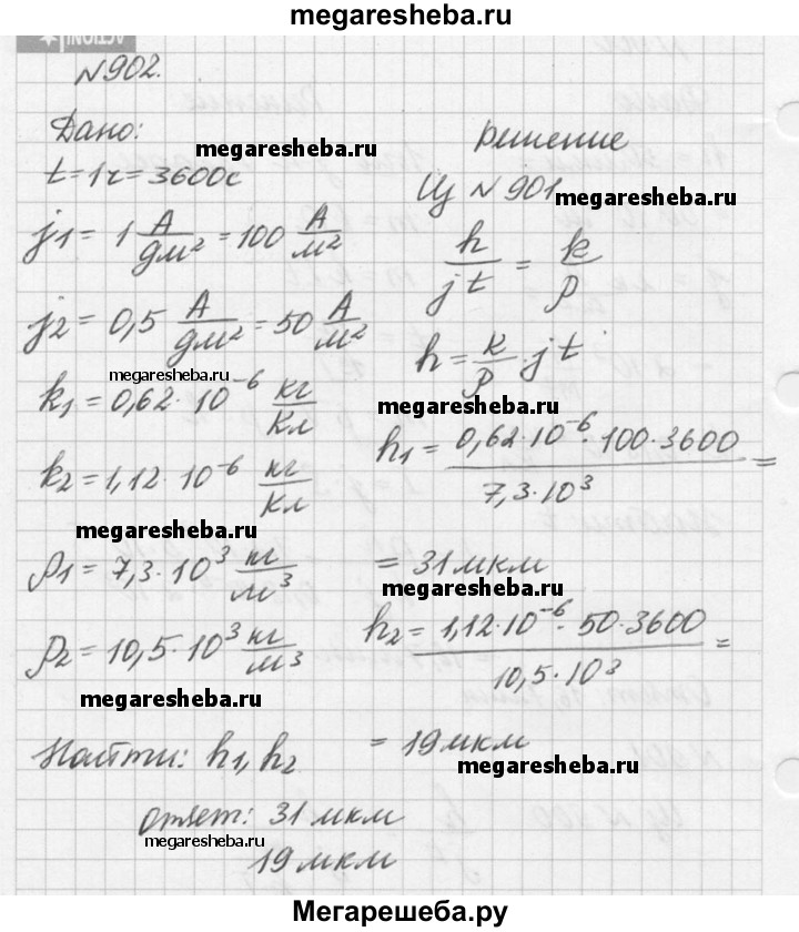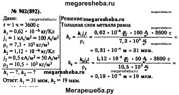 Подробный решебник (ГДЗ) по Физике за 10‐11 (десятый‐одиннадцатый) класс задачник - готовый ответ номер - 902. Авторы учебника: Рымкевич. Издательство: Дрофа 2016.