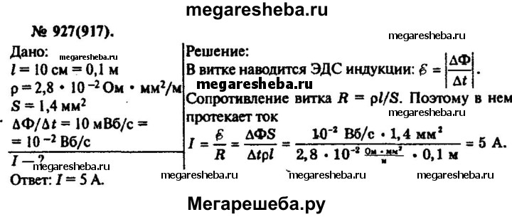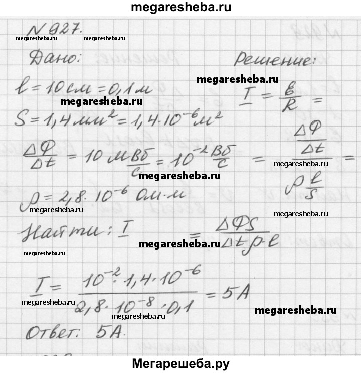 Подробный решебник (ГДЗ) по Физике за 10‐11 (десятый‐одиннадцатый) класс задачник - готовый ответ номер - 927. Авторы учебника: Рымкевич. Издательство: Дрофа 2016.