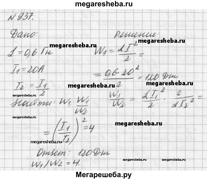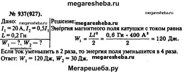 Подробный решебник (ГДЗ) по Физике за 10‐11 (десятый‐одиннадцатый) класс задачник - готовый ответ номер - 937. Авторы учебника: Рымкевич. Издательство: Дрофа 2016.