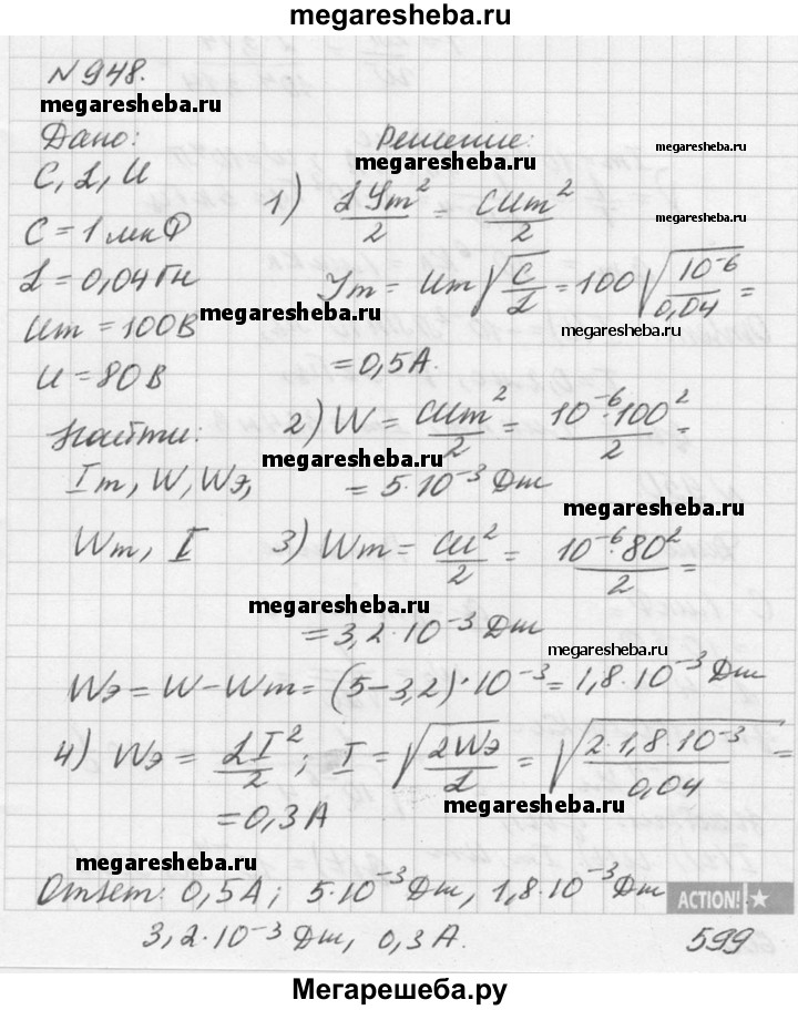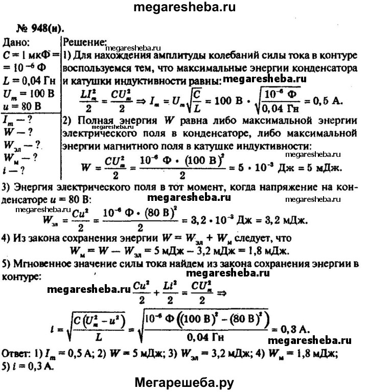 Подробный решебник (ГДЗ) по Физике за 10‐11 (десятый‐одиннадцатый) класс задачник - готовый ответ номер - 948. Авторы учебника: Рымкевич. Издательство: Дрофа 2016.