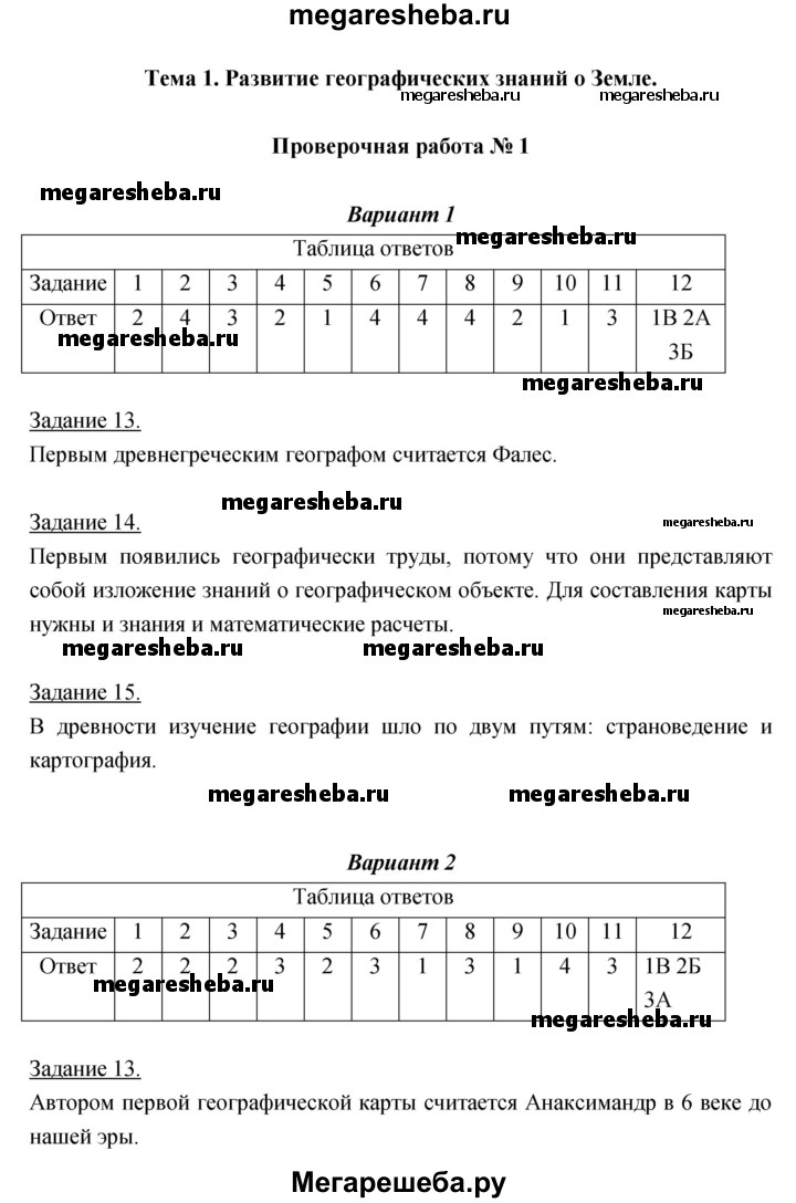 ГДЗ по географии 5‐6 класс Барабанов тетрадь-экзаменатор тема 1 (проверочная работа) - 1