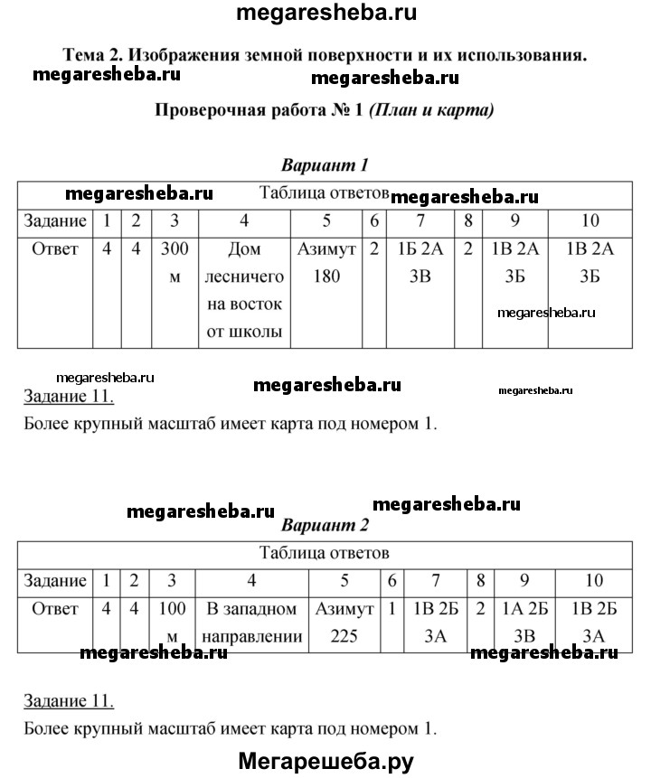 Решебник / тема 2 (проверочная работа) / 1 (план и карта)