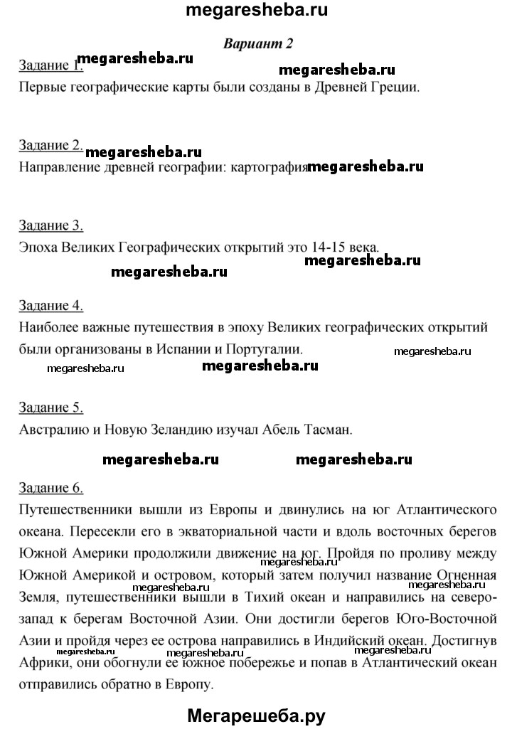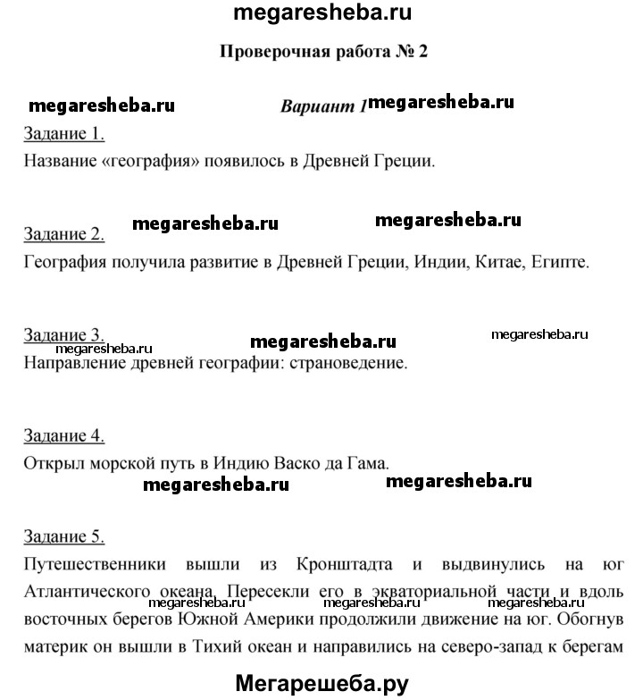 Подробный решебник (ГДЗ) по Географии за 5‐6 (пятый‐шестой) класс тетрадь-экзаменатор - готовый ответ тема 1 (проверочная работа) - 2. Авторы учебника: Барабанов. Издательство: Просвещение 2019.