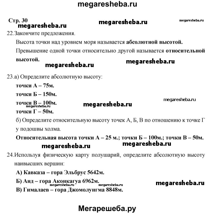 Подробный решебник (ГДЗ) по Географии за 5 (пятый) класс рабочая тетрадь - готовый ответ страница - 30. Авторы учебника: Дронов, Савельева. Издательство: Дрофа 2019.