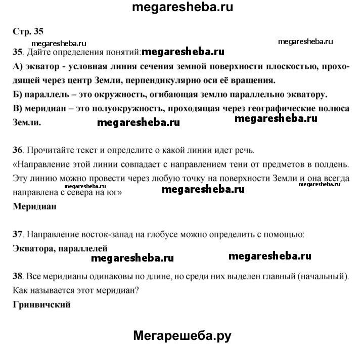 Подробный решебник (ГДЗ) по Географии за 5 (пятый) класс рабочая тетрадь - готовый ответ страница - 35. Авторы учебника: Дронов, Савельева. Издательство: Дрофа 2019.