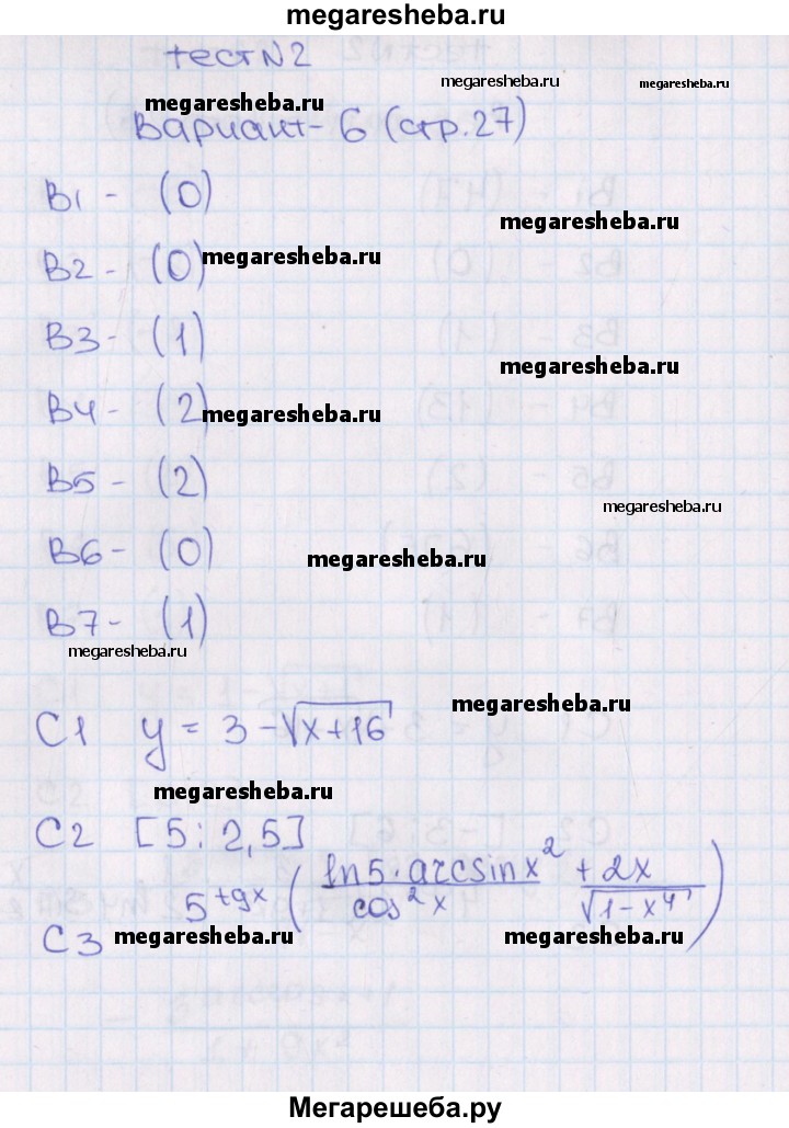 ГДЗ по алгебре 11 класс Шепелева тематические тесты ЕГЭ Базовый и углубленный уровень 2 тест. вариант - 6
